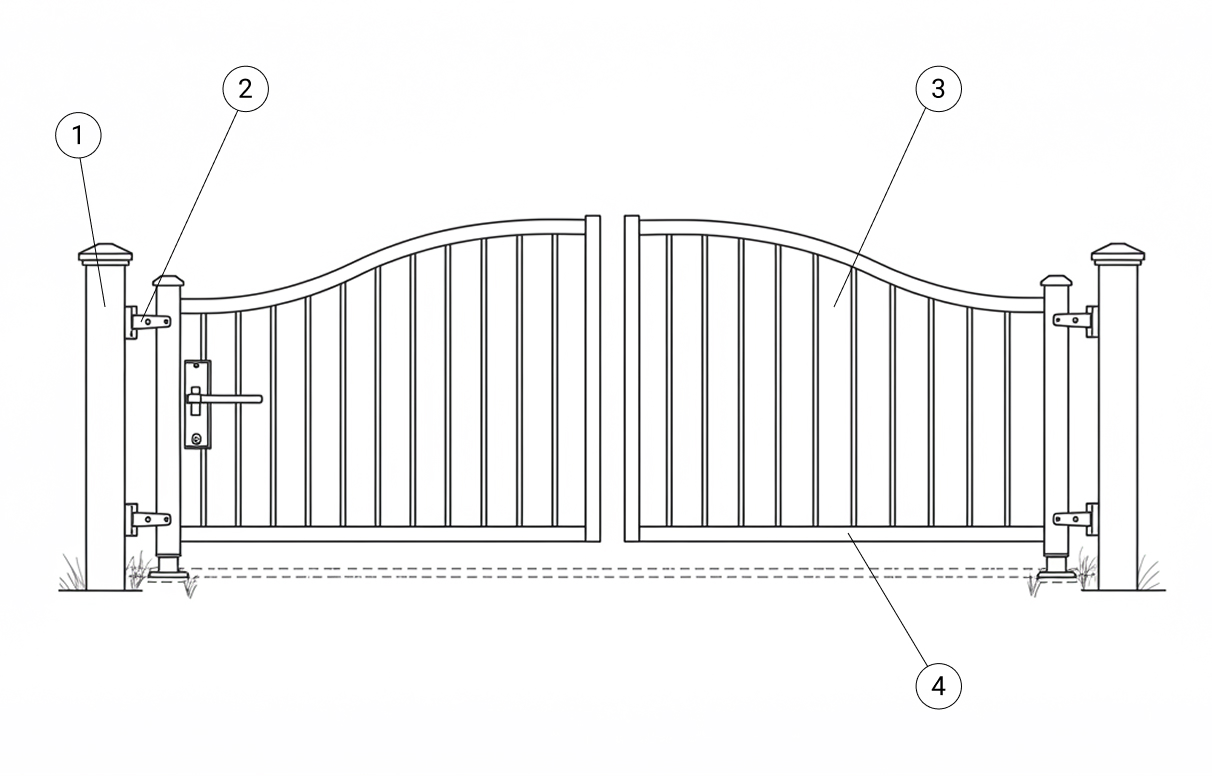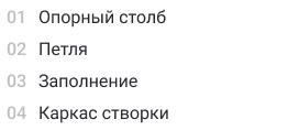 Изделия выполняют из каркаса, столбов, и наполняют створки заказанным заказчиком материалом. Каркас создан из трубы прямоугольной или квадратной. Для столбов подходит профиль 100х100 мм или 80х80 мм.